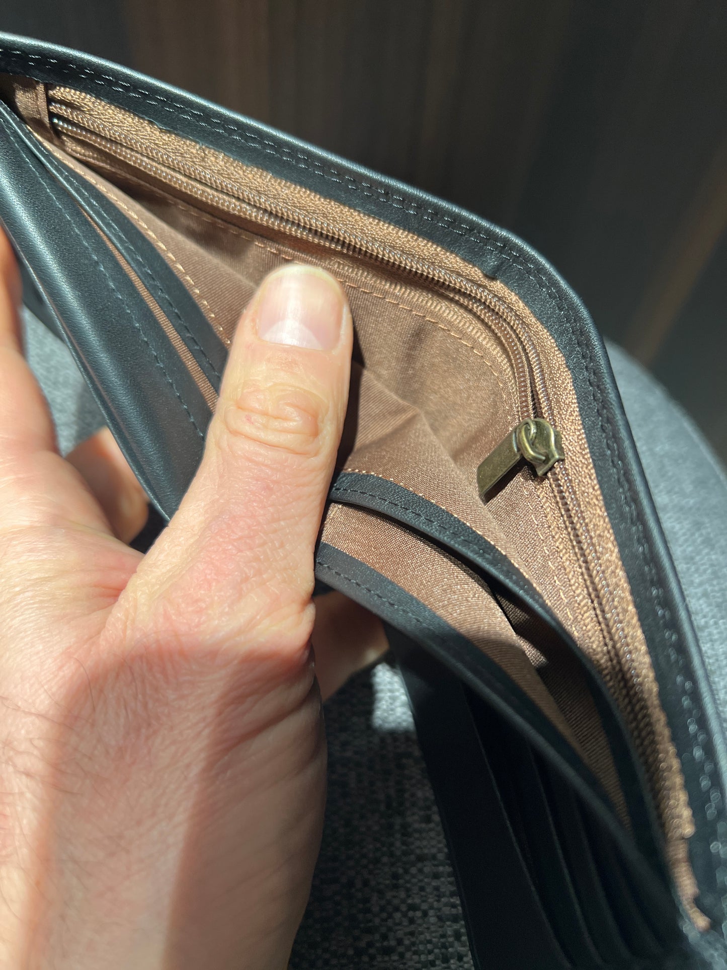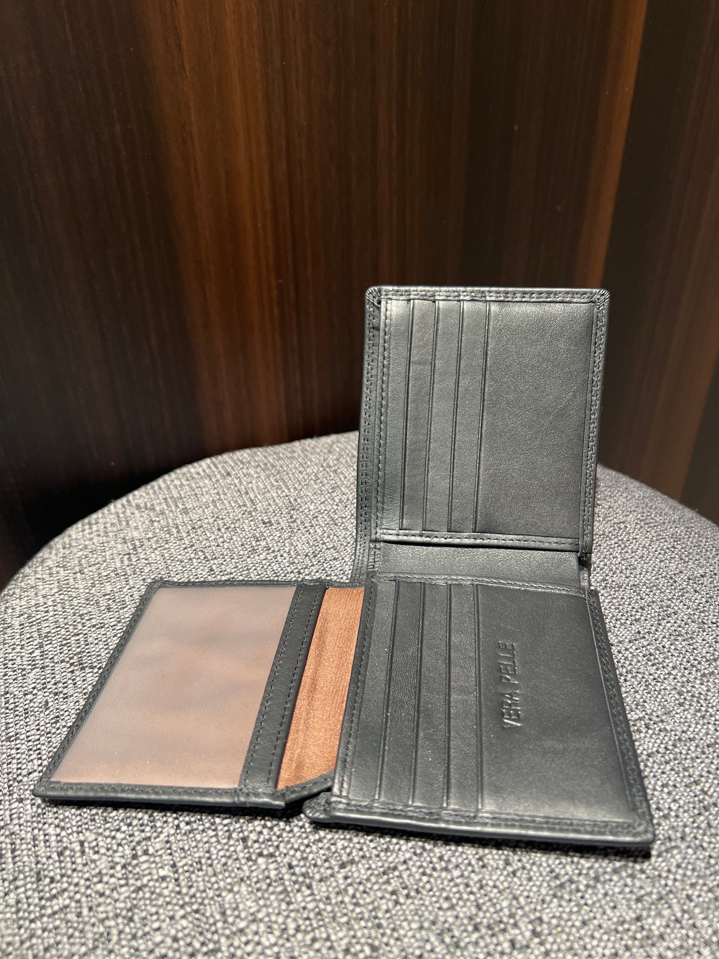 Portafoglio uomo in morbida pelle due scomparti, portamonete , portatessere, tasca con chiusura .Vera pelle .Dimensioni L 110 mm P 20 mm H 95mm
