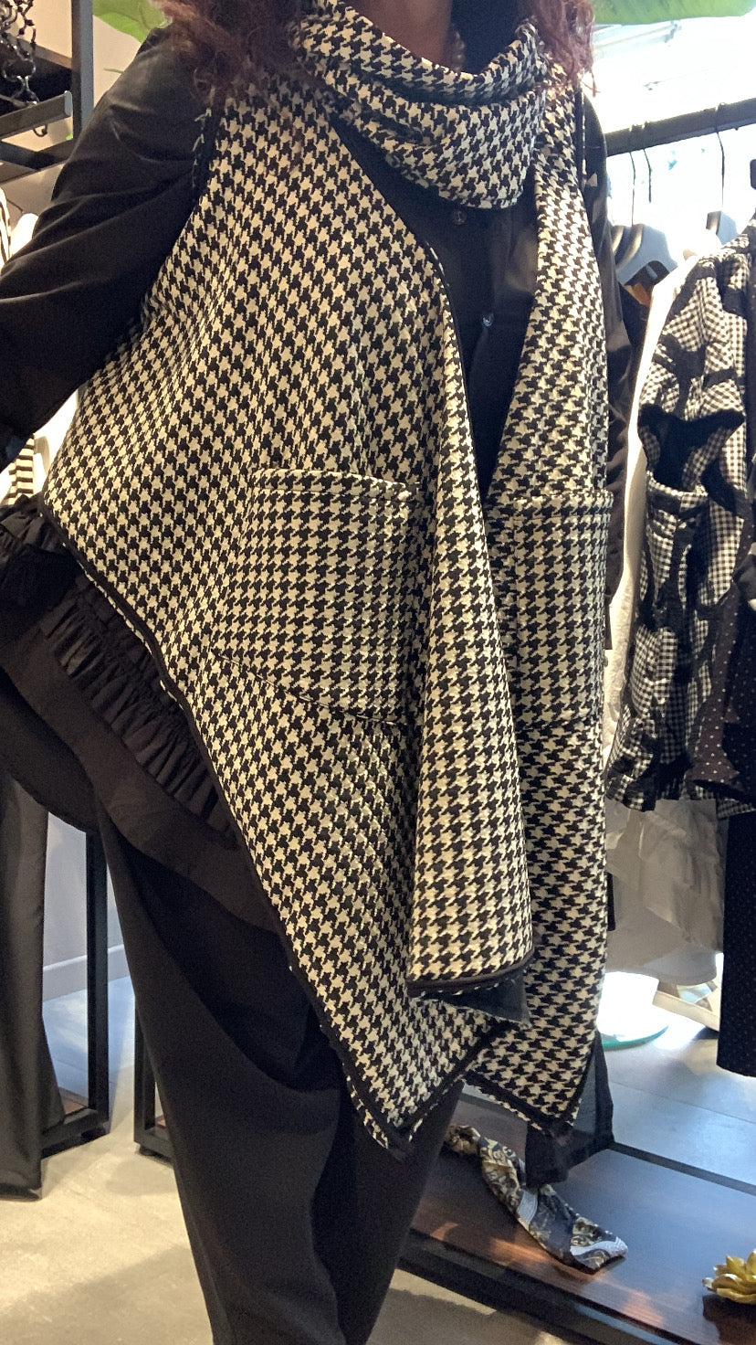 Gilet con collo a ciambella ,asimmetrico,tasche .