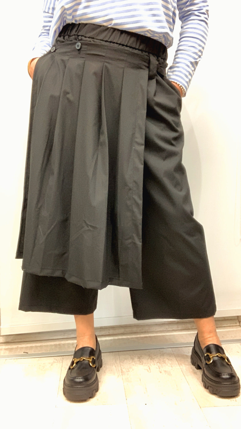 Pantalone croped con pannello a pieghe davanti ,
